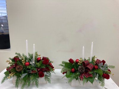 Magnificent arrangement! It exhibits the talent and quality you have always provided through the years. And the photo, curtious genius! Thanks again to the Flower Patch Team for another Merry Christmas!