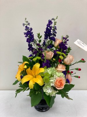 When I opened this picture I bust into tears. This is an absolutely, gorgeous piece of art. Bob spent many years in the military and was very patriotic- I know he's in Heaven now admiring this wonderful, beautiful arrangement. Thank you to the artist who created it. I will never buy flowers from anyone else. Thank you for your kindness and God Bless you!ππΊπΈβ€οΈ