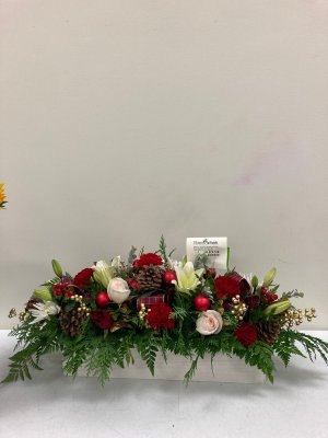 It was easy to order online, and the flowers were ready for pickup at the promised time. A beautiful Christmas arrangement! Thank you!