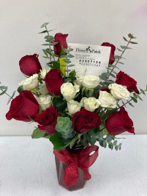 Magnificent arrangement! It exhibits the talent and quality you have always provided through the years. And the photo, curtious genius! Thanks again to the Flower Patch Team for another Merry Christmas!