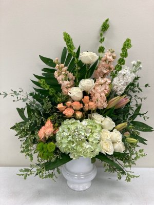 I ordered my arrangement online very easy. They actually sent me a picture when it was done to show me what it looked like. So when I got to funeral, I immediately knew which flowers were from us.They were beautiful!