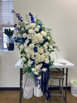 I appreciate the photo of the finished arrangement! It's not quite as full as the online photo, which is why I deducted one star, but it does match the style and theme, and is still lovely. I also appreciate how quickly you are able to deliver!