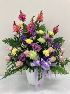 I ordered my arrangement online very easy. They actually sent me a picture when it was done to show me what it looked like. So when I got to funeral, I immediately knew which flowers were from us.They were beautiful!