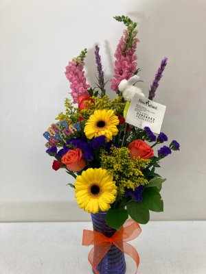 Disappointed with this arrangement. Ask for a glass vase and expected it to be taller.