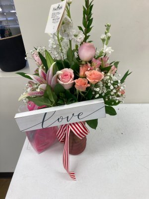It's lovely! The only comment I would make is I wish the roses were a little taller so they could be seen easily. The colors are great, love the pink daisies! Thank you!! I LOVE getting a picture!!