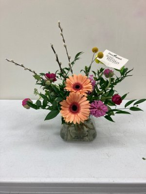 Disappointed with this arrangement. Ask for a glass vase and expected it to be taller.