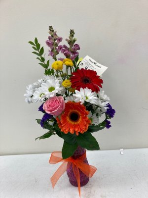 It's lovely! The only comment I would make is I wish the roses were a little taller so they could be seen easily. The colors are great, love the pink daisies! Thank you!! I LOVE getting a picture!!