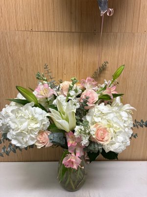 I was rather underwhelmed by this arrangement. It looks like more of a $40 bouquet rather than an $85 one. Additionally, there one not many new baby boy options with blue hues. Most are white. I would not select the "let florist choose" again option.