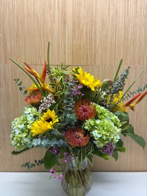 Arrangement was beautiful and was on the table when we arrived at the restaurant as requested. Great job on the arrangement and delivery. Made our lunch very special.