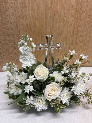 I was very pleased with my order, especially the vase with a cross on it. The flowers were excellent. I would highly recommend your business to family and friends