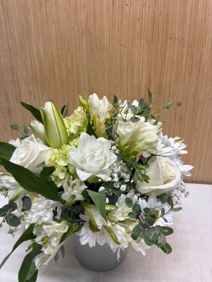 I was very disappointed. The website showed for $85 short stem Roses. It were no Roses in the arrangement and the big white Hyacinth seem out of place. Very disappointed.