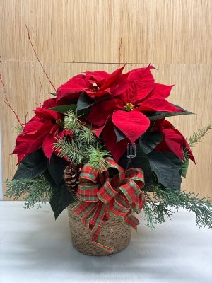 First, the lady who took my order was patient and let me take time to decide. And so friendly. Customer service is alive and well at Breen's! My cousin Kathy seemed so please with this festive arrangement which was perefect for Christmas and through to New Year's! Many thanks