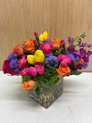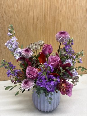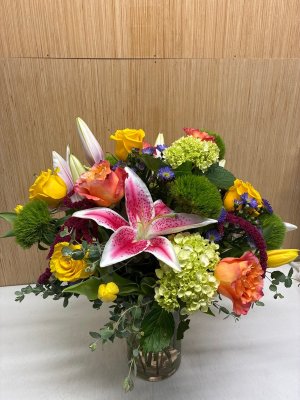 The arrangement is spectacular! Very colorful and full and fresh. I appreciate you!