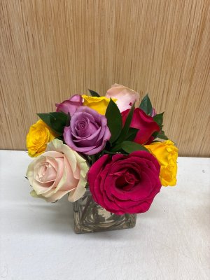 I was very disappointed. The website showed for $85 short stem Roses. It were no Roses in the arrangement and the big white Hyacinth seem out of place. Very disappointed.