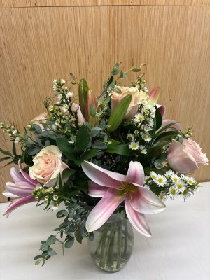 Beautiful arrangement and Christy was so helpful to make it all happen after hours .