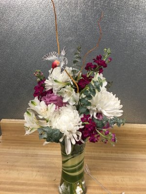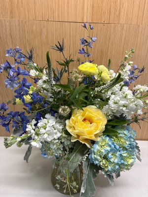 A wonderful and simple arrangement. I brought a sample photo of the colors that I would have surrounding it and the team did an excellent job of meeting my needs and expectations. Would absolutely recommend!
