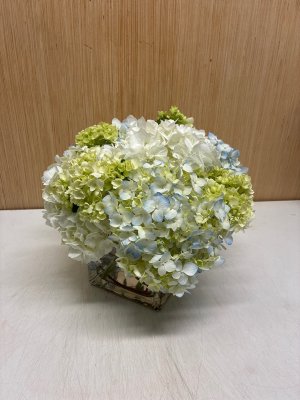 Thanks for the photo! The beautiful hydrangeas look perfect! My friend lost her husband and this bouquet helped to lift her spirits during this difficult time. Carol at Breens helped me with this order and made sure the flowers arrived on time. Thank you so much, for making a sad time just a little brighter.