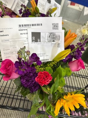Beautiful. Very colorful. A nice birthday bouquet from my son and his family.