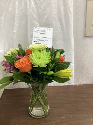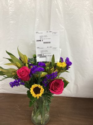 The arrangement was beautiful, however some of the flowers looked dead as they were leaning over. My office was not sure who the flowers were for has the deliver person walked out after placing them on the table. This lead to my manager reading my message in my card lol