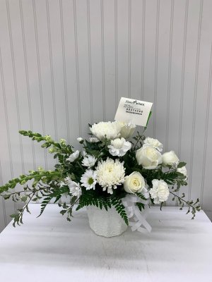 Beautiful floral arrangement was delivered on time and just as pictured on the website. Customer service was very helpful with a last minute change.