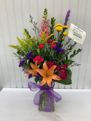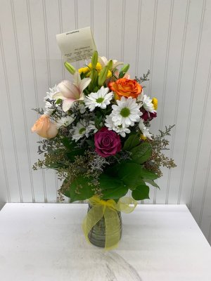 First of all, the woman who helped me order was fantastic! She was so helpful from start to finish! Flower arrangement and extras showed up on time and were gorgeous and fragrant. Thank you!