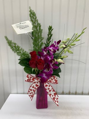 What a beautiful arrangement! The Flower Patch was so easy to work with. I live across the country and the order was perfect and easy to make. They sent a picture of what was being delivered. Their prices were very reasonable.