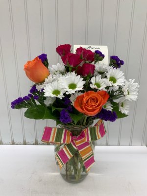 The flowers are beautiful. Thanks for accommodating a last minute order. You are so great to help! The photo was so helpful to see the finished product before delivery.