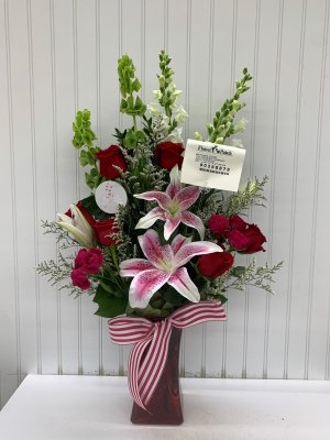 The flowers were absolutely beautiful. Just what I ordered. The customer service was outstanding. I have ordered from the Flower Patch before and will continue to do so.