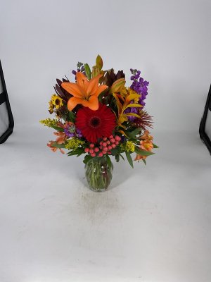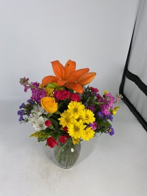 The recipient liked it so much she brought it back in to make it last even longer. Beautiful arrangement with unique flowers!