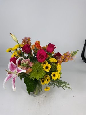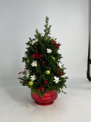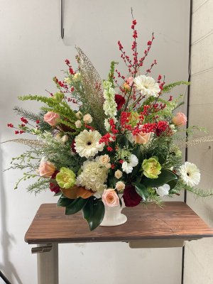 We ordered a beautiful Christmas season arrangement from George's, with red, green, and white colors and even pine cones. Nice picture too. Looking forward to hearing that the Roanoke delivery to our family was successful.