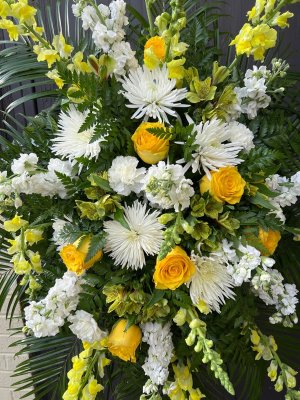 Not only was the standing funeral arrangement beautiful but it was delivered in record time and able to be used both at the funeral home and the church the next day. Thanks so much for making that happen!!
