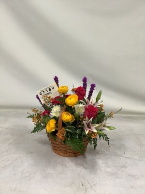 Beautiful basket arrangement to let our loved one know we are thinking of her.