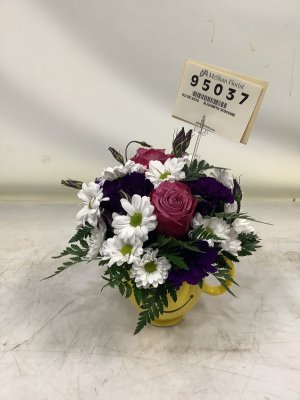The arrangement went to Dr. Mildred J Bell, who passed away. I did not see the arrangement there, but waiting for acknowledgement frim response from family of receipt. Yet, the photo that I received of the arrangement, once finished product, looked very, very, nice. Overall, I was pleased of what I saw via photograph. I never received a time arrangement was delivered, only the date. Thanks!