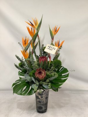 The flower arrangement is beautiful and I really appreciate the photo. It is especially nice when ordering over the phone from out of town. McShan always delivers!