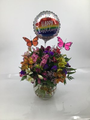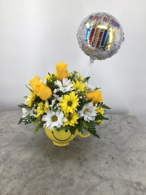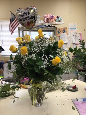 Thank you for this beautiful floral arrangement! It brightened up our 97 years old aunt for her birthday. I also greatly appreciate the photo of the flowers.