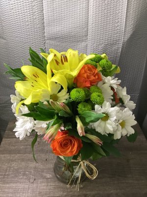 What a beautiful arrangement. Delivered with care and thoughtfulness. Loved getting a photo. Thank you for adding a special touch to my birthday.