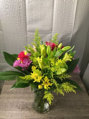 It was so cute,perfect for me,designed well,will miss it when gone. Only problem was the bigger yellow flowers,, daisies? Were kind of wilted on arrival but everyone loved it. Thank you!