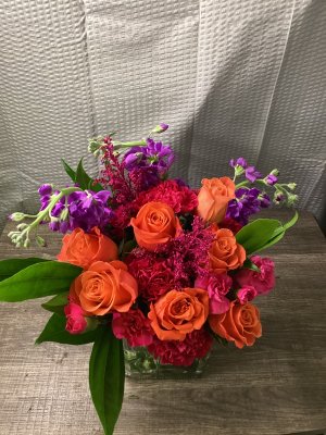 arrangement was beautiful. But, the roses drooped over the next day because they weren't supported with a wire, it appeared.