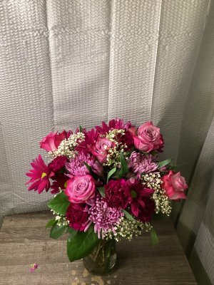 "This arrangement was polar opposite of what daughter ordered and paid for. Looked like they used flowers that were left over. There were couple of roses, couple of mums, couple of carnations all in pink bubble gum color. Added babies breaths and some purple flowers which sort of coordinated with the pink but then added 2 bright yellow Gerber daisies that stuck out like an after thought. Looked like an arrangement for a child's birthday party not for a 63 year old mother. When daughter sent me pick of what she selected I told her to insist on refund "