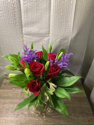 arrangement was beautiful. But, the roses drooped over the next day because they weren't supported with a wire, it appeared.