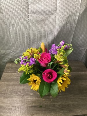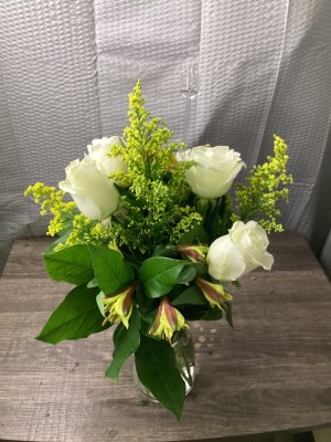 arrangement was beautiful. But, the roses drooped over the next day because they weren't supported with a wire, it appeared.