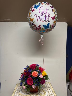 It is a lovely arrangement. I do like it in the vase ( thought it was going to be in a basket). The vase gives it nice height. I am very happy with the presentation. It is beautiful. Thank you.