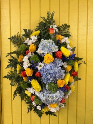 I enjoyed getting the photo. The flowers pictured are beautiful, however, the hydrangeas in both arrangements were already dying by the time I arrived at 10AM. I was so disappointed and a little embarrassed. The spray was placed right next to the photo of the deceased.