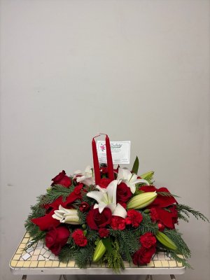 Beautiful holiday centerpieces year after year from Salvys...everyone in my family loves them!