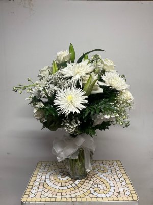 The flowers were spectacular. My sister and I had matching flowers. Everyone commented about how beautiful the flowers were. I took my flowers home and I am still enjoying them and thinking of my wonderful brother Charles. Thank you so mych. Maureen McLaughlin