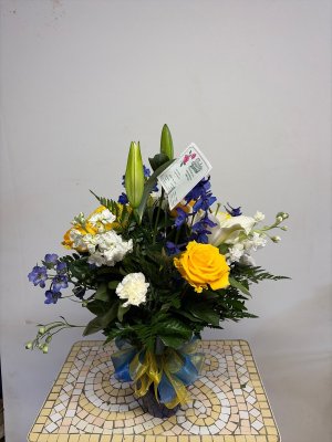 Beautiful, thank you. Just wish I could see what the arrangement is in…maybe a couple pictures from different angles but I will definitely order from you again! ❤️