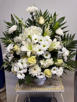 The arrangement looks beautiful. I only wish I could've seen it at John Reid‘s wake. Although they were delivered, somehow they were misplaced, but they did look beautiful.
