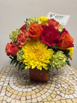 Very pretty! Recipient was amazed. She loved the arrangement. Having a photo was great to see what was sent. I will definitely turn to Salvy again for future arrangements