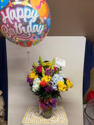 Very pretty! Recipient was amazed. She loved the arrangement. Having a photo was great to see what was sent. I will definitely turn to Salvy again for future arrangements