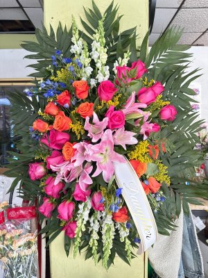 The flower arrangement was absolutely stunning and perfect for the service. The size and quality exceeded our expectations, and my family and I were very pleased. Highly recommend!